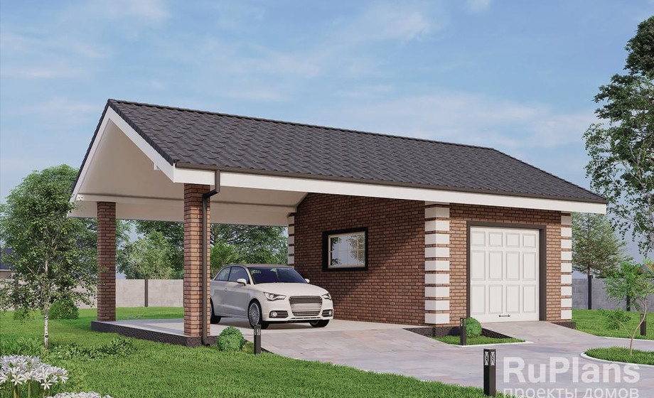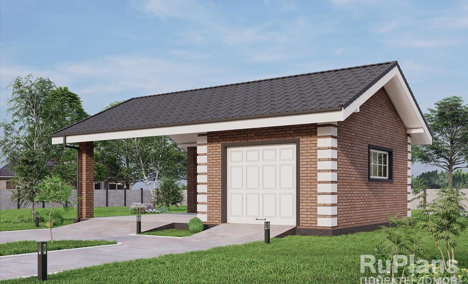 - Rg4023 - Эскизный проект одноэтажного гаража с навесом