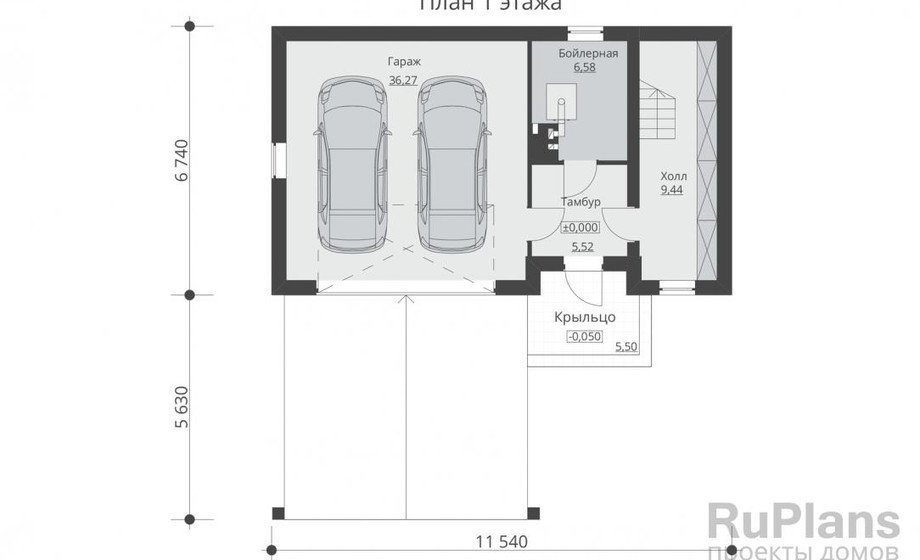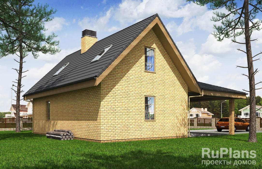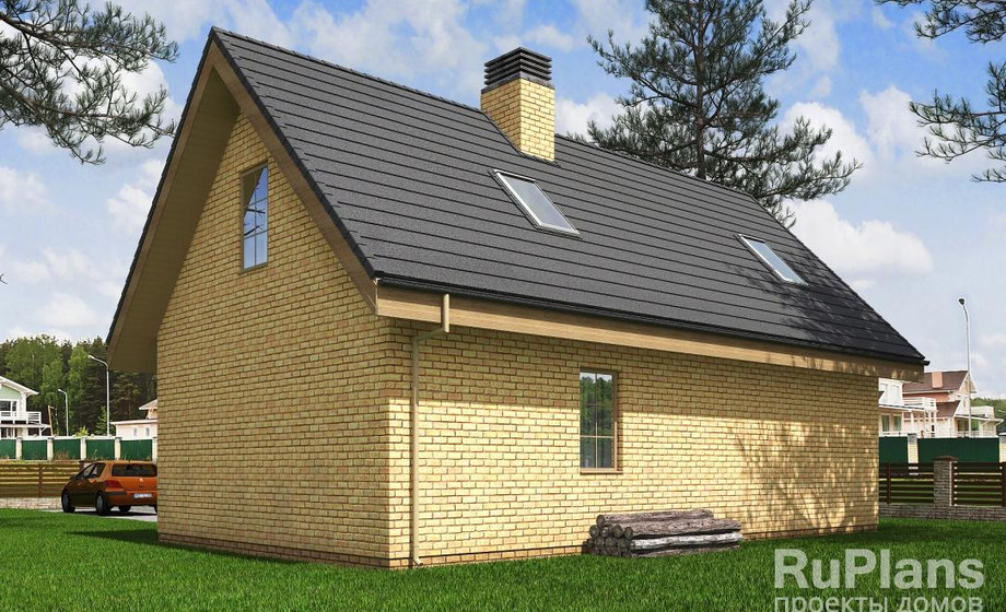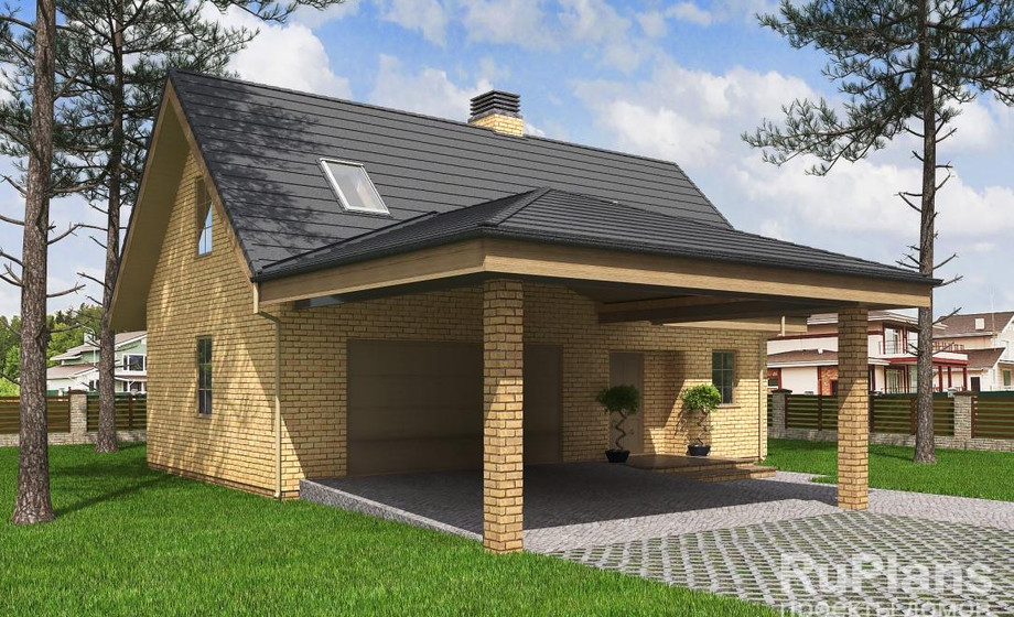 Гараж с жилым мансардным этажом с размерами здания 6,74 x 11,54 м. Наружная отделка здания – клинкерная плитка. Фундамент – ленточный монолитный ж/б. Наружные стены – ГВЛ, минеральная вата, газобетонный блок с отделкой клинкерной плиткой. Перегородки - газобетонные блоки, каркасные с ГКЛ. Пол этажа - пол по грунту, межэтажное перекрытие - деревянные балки. Крыша двускатная. Кровля – битумная черепица. Окна — металлопластиковые.