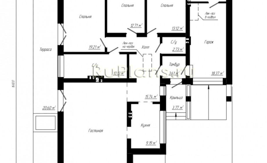 - Rg4961 - Проект одноэтажного дома с подвалом и террасой