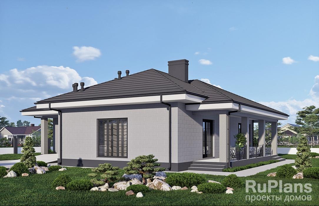 - Rg6069 - Одноэтажный дом с террасой и гаражом