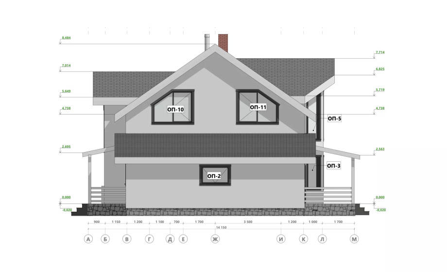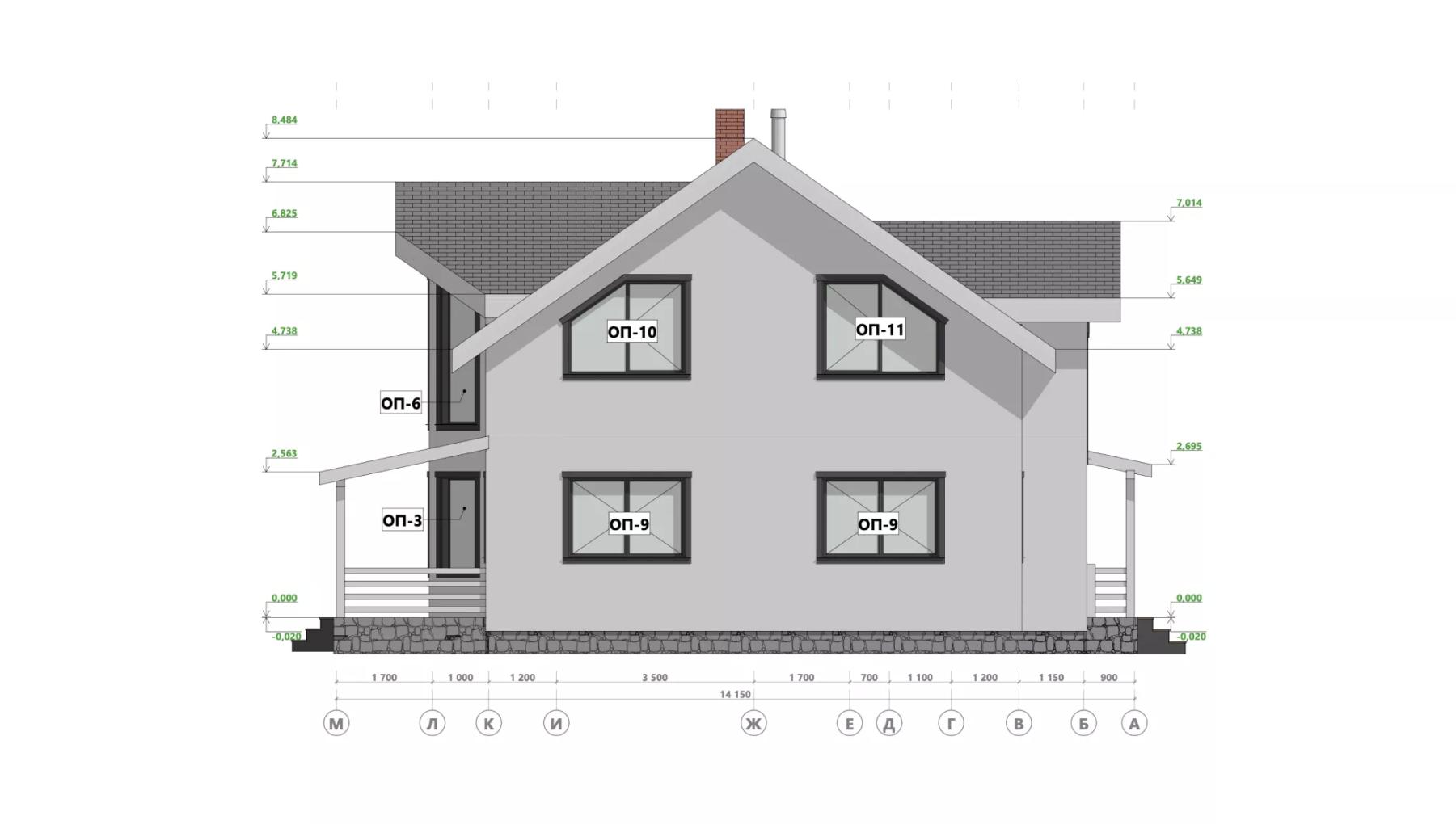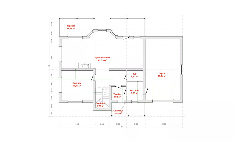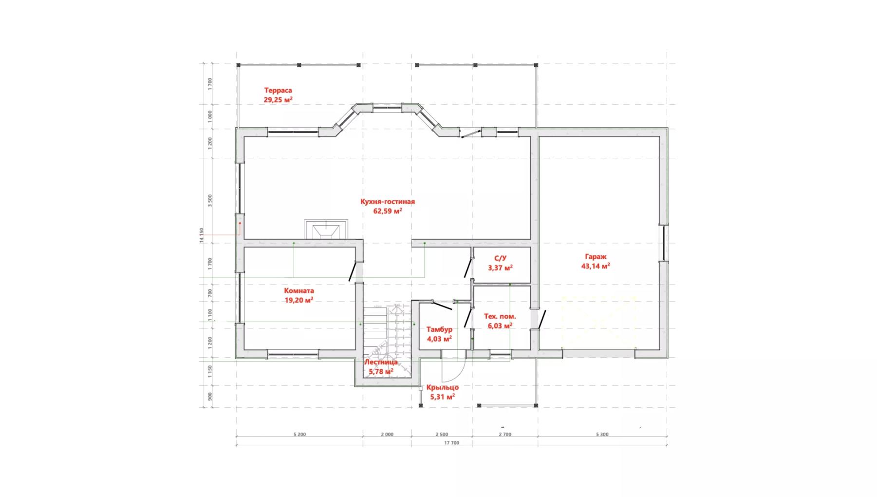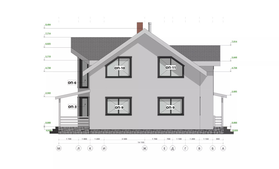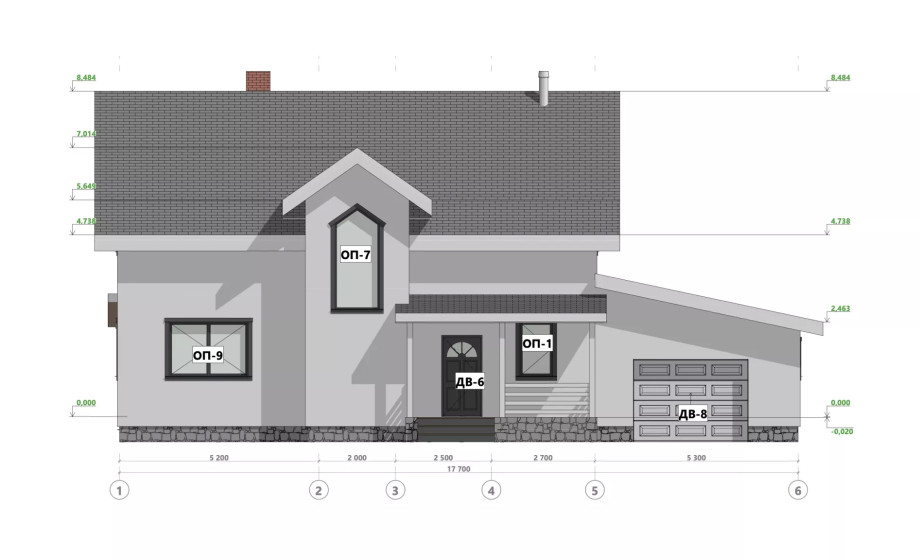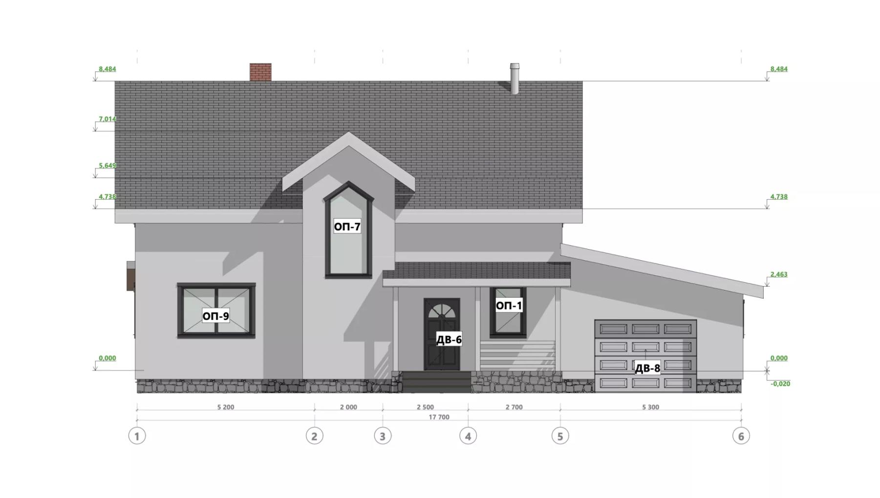 - Проект двухэтажного дома с гаражом из газобетона 22ЕК17.00