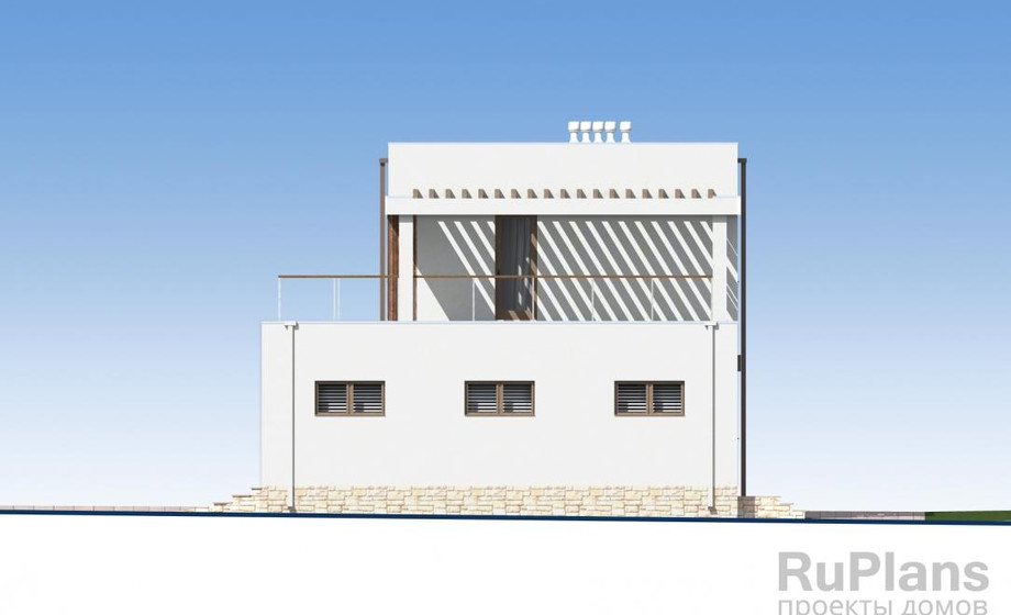 Проект двухэтажного жилого дома с гаражом и террасами с размерами здания 10,16 х 17,43 м. Фундамент - ленточный монолитный ж/б под несущими стенами. Наружные стены - газобетонные блоки с утеплением минеральной ватой и отделкой фиброцементными панелями.. Внутренние стены - газобетонные блоки. Перегородки - газобетонные блоки. Пол бойлерной и гаража - пол по грунту; пол 1 этажа, межэтажное перекрытие и перекрытие плоской кровли - сборные ж/б плиты. Кровля плоская. Окна — металлопластиковые.