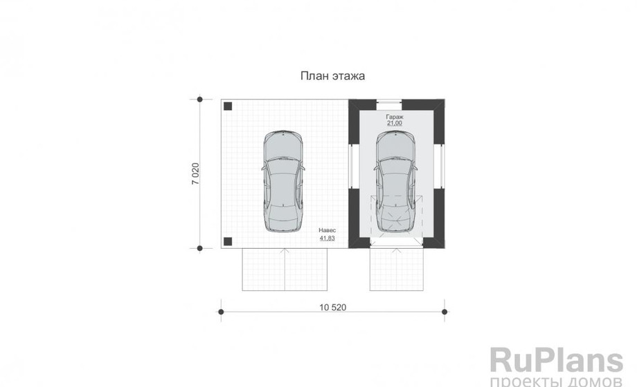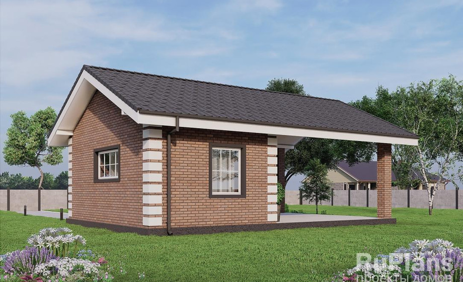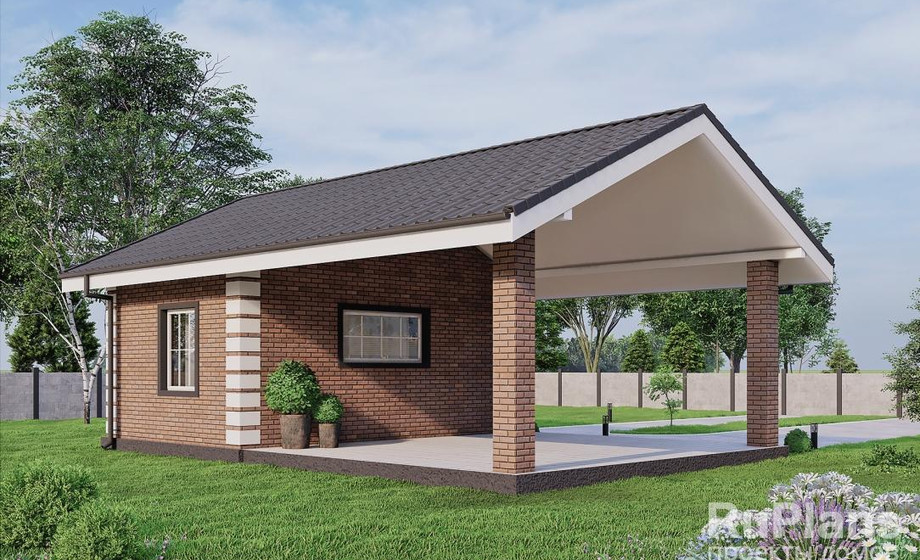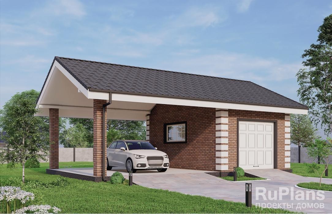 - Rg4023 - Эскизный проект одноэтажного гаража с навесом