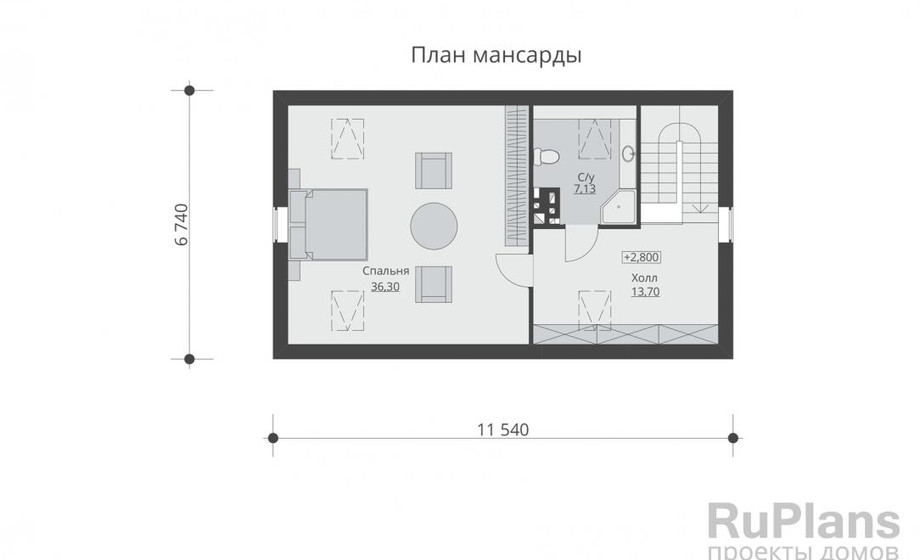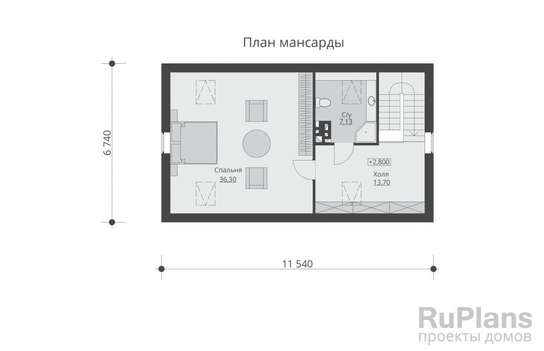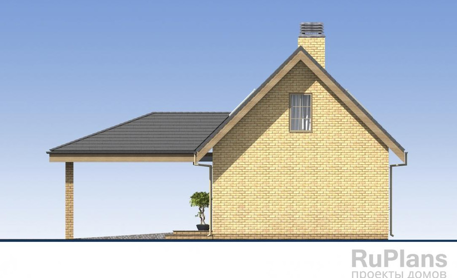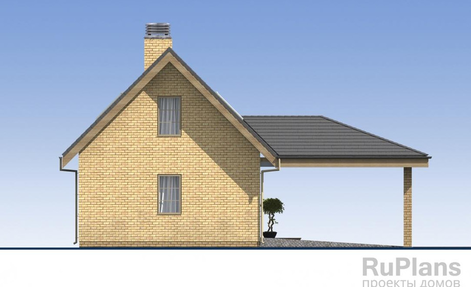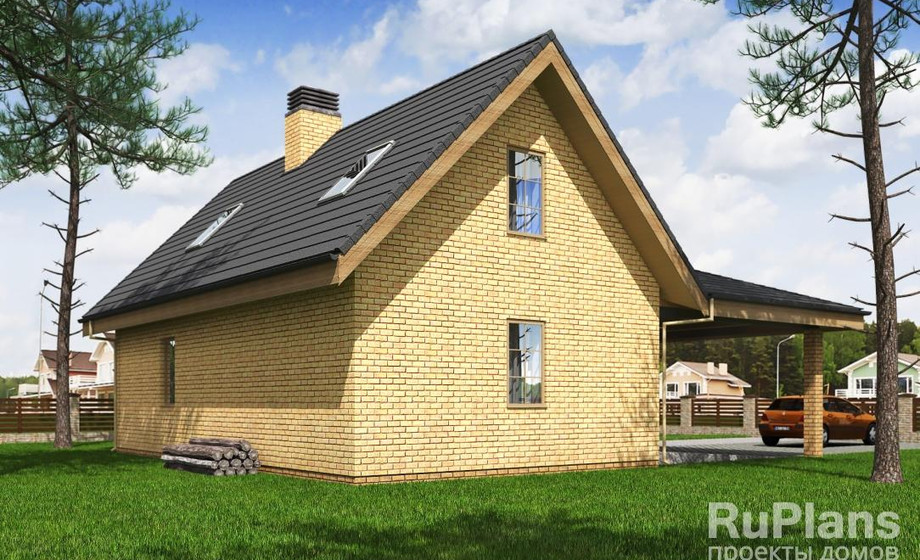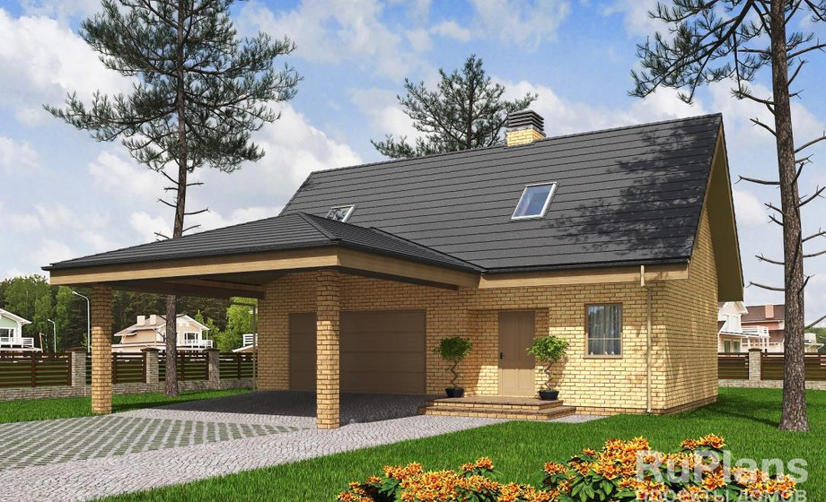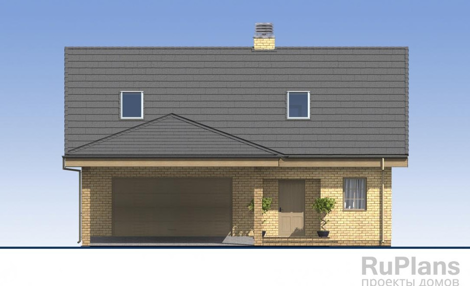 Гараж с жилым мансардным этажом с размерами здания 6,74 x 11,54 м. Наружная отделка здания – клинкерная плитка. Фундамент – ленточный монолитный ж/б. Наружные стены – ГВЛ, минеральная вата, газобетонный блок с отделкой клинкерной плиткой. Перегородки - газобетонные блоки, каркасные с ГКЛ. Пол этажа - пол по грунту, межэтажное перекрытие - деревянные балки. Крыша двускатная. Кровля – битумная черепица. Окна — металлопластиковые.