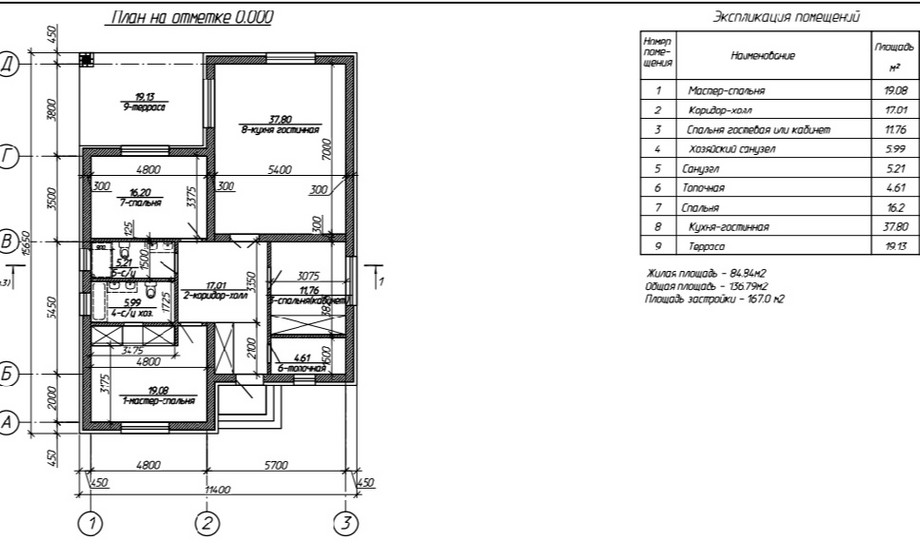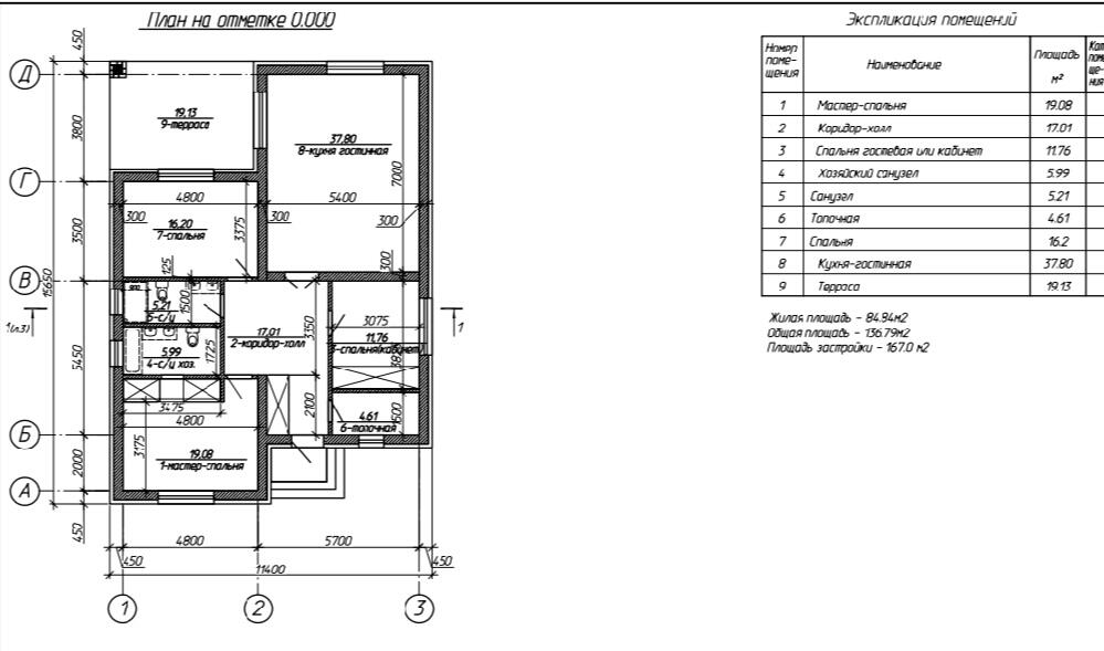 - Площадь застройки – 167,0 м.кв.