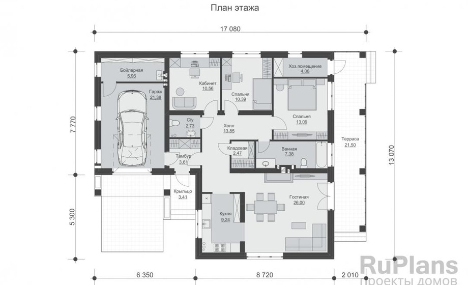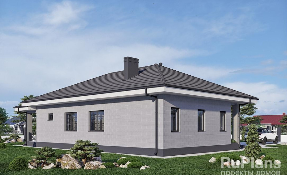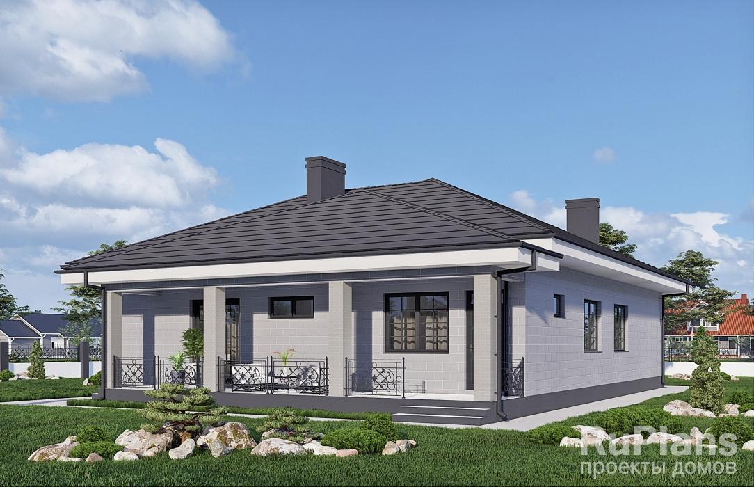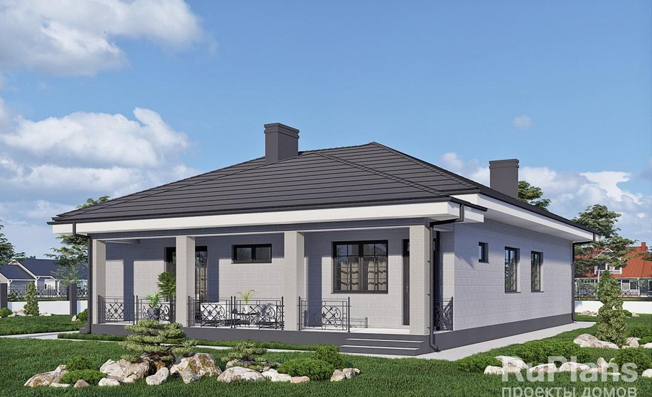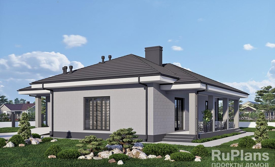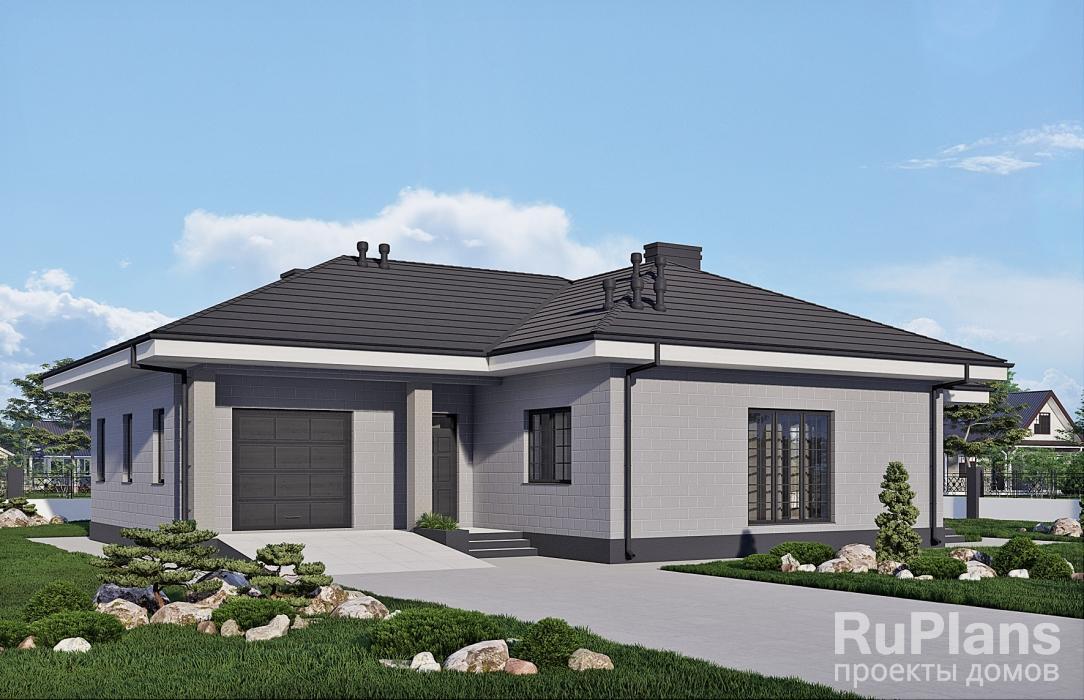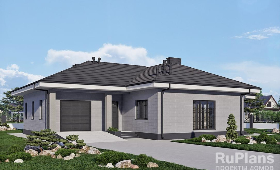 - Rg6069 - Одноэтажный дом с террасой и гаражом