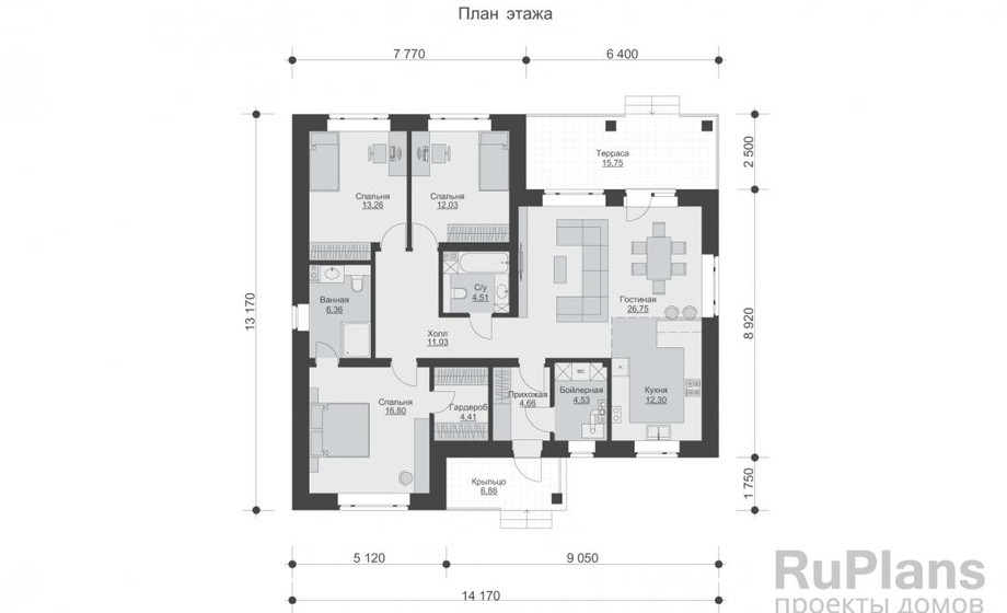 - Rg6092 - Одноэтажный дом с террасой