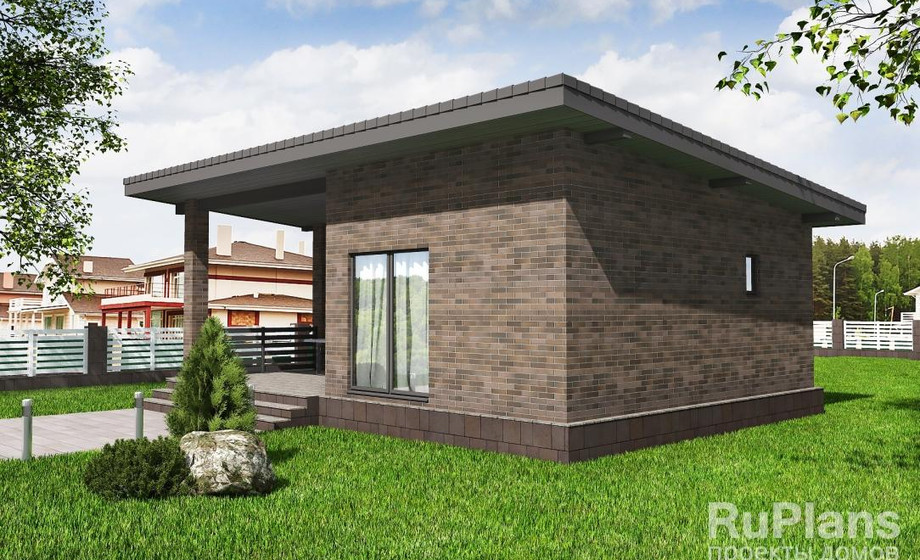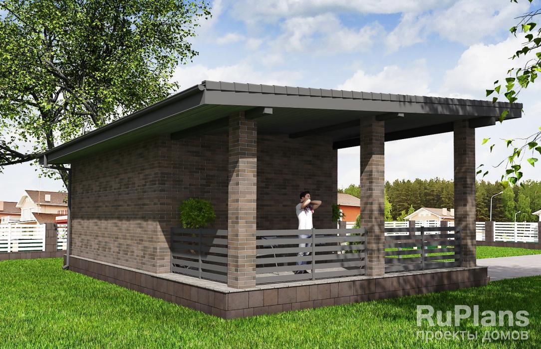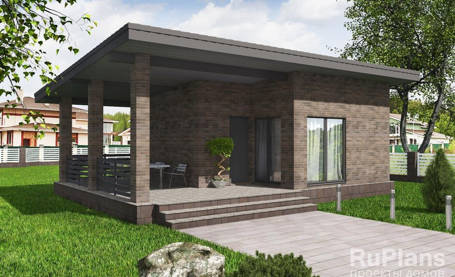 Баня с террасой с размерами здания 17,28 х 10,13 м. Фундамент - монолитная ж/б плита. Наружные стены - газобетонный блок с вент. зазором и отделкой облицовочным кирпичом. Перегородки - газобетонный блок. Пол этажа - пол по ж/б плите, чердачное перекрытие - деревянные балки. Крыша односкатная. Кровля - битумная черепица. Окна - металлопластиковые.