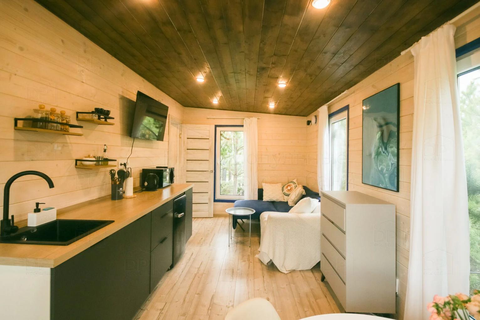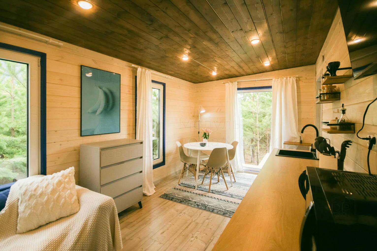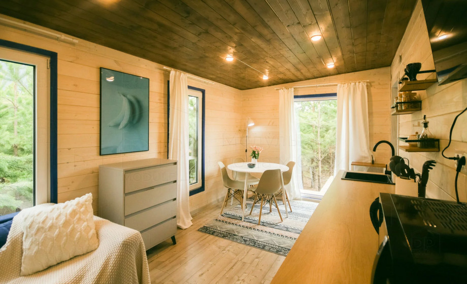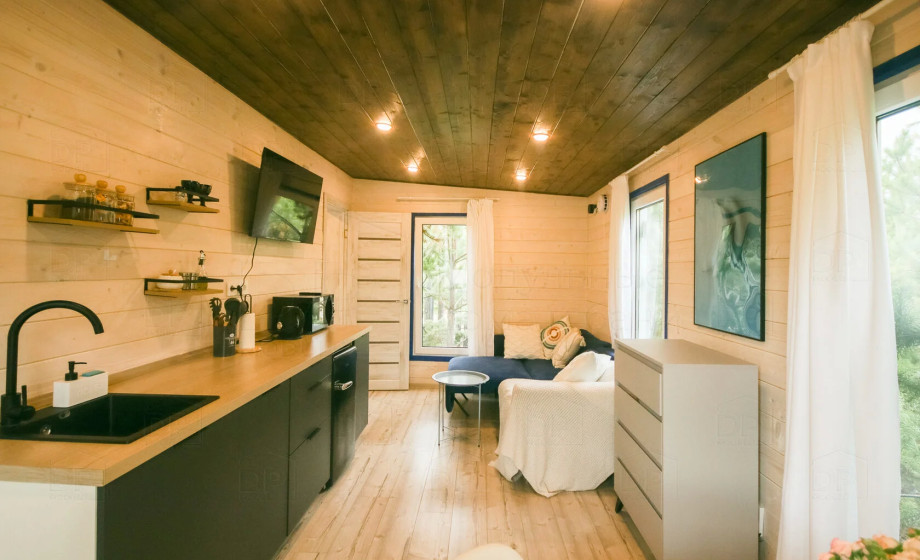 Подойдет для проживания всей семьей. Продумана каждая деталь: спальня, просторный зал, полноценная кухонная зона с обеденным столом, санузел, прихожая. По пересмотру каждой стены расположено по два окна — отличное решение, которое создает эффекте расширенного пространства. По желанию можно добавить перегородки, тем самым выделив еще одну комнату.