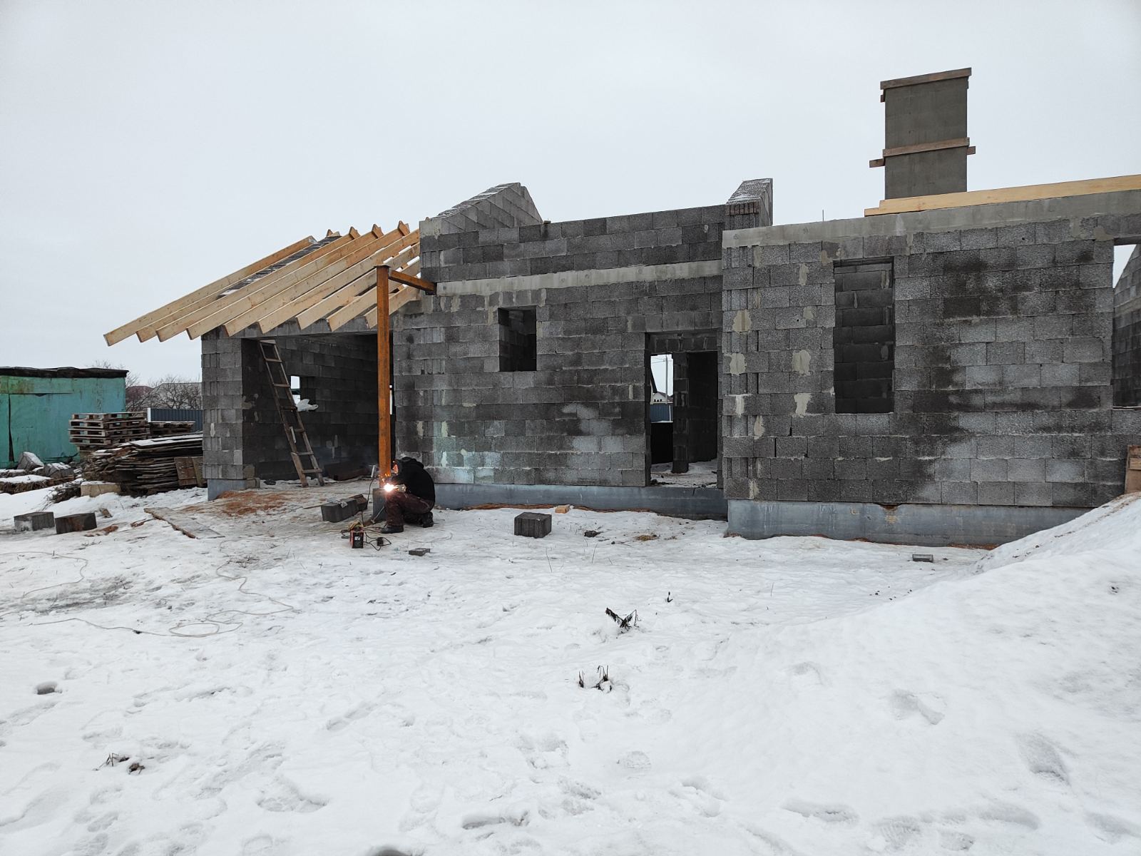 Наиболее часто применяется. Простата ее возведения и возможность экономного раскроя кровельных материалов делает этот вариант экономичным. Конструкция используется для дачных домиков, хозяйственных построек, небольших коттеджей.