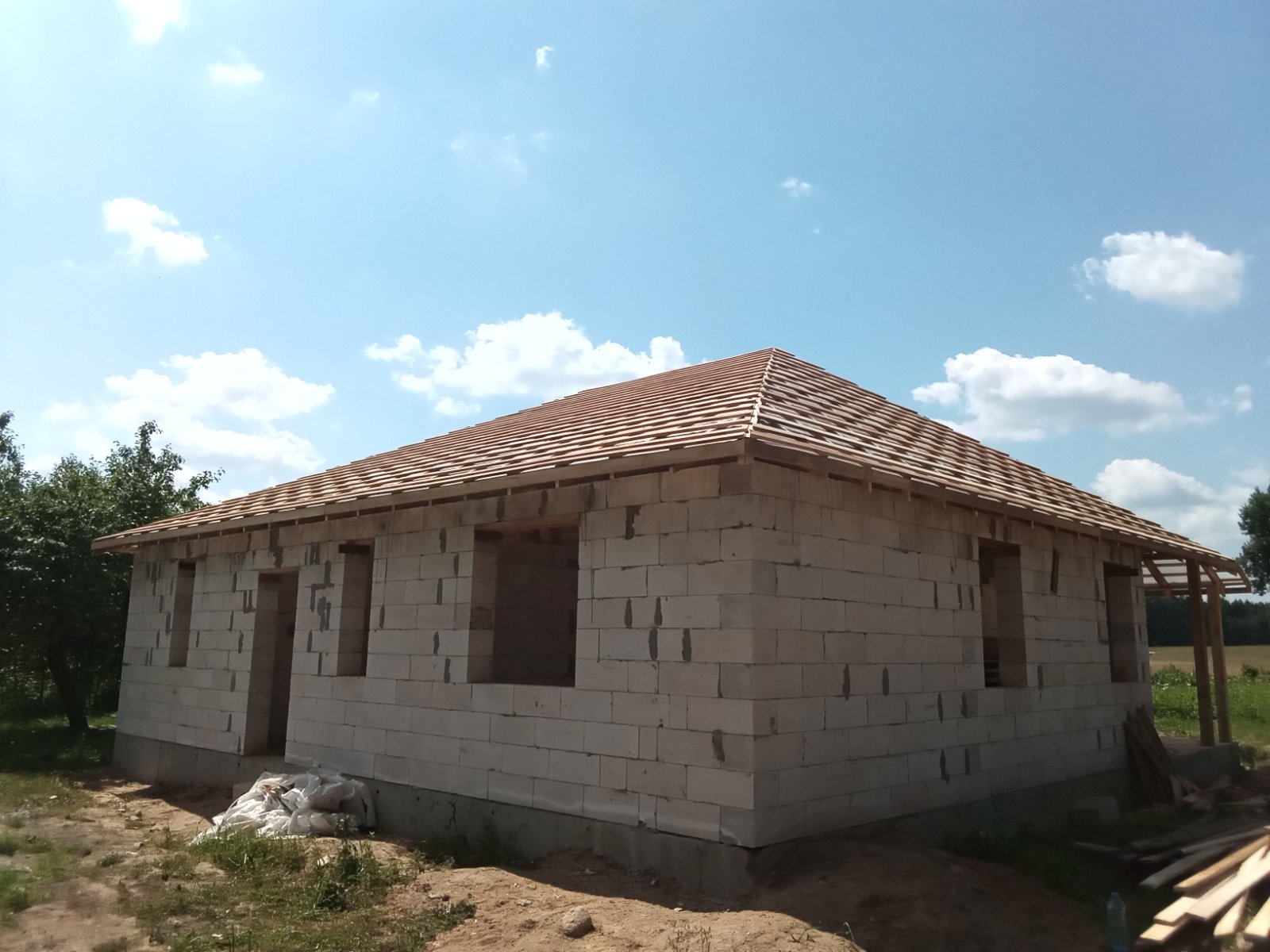 Наша компания предлагает услуги по устройству разных типов кровли — двускатной и вальмовой с утеплением и без, а также с площадью покрытия от 80 до 240 м2. В арсенале наших высокопрофессиональных мастеров современные технические средства, расширенный выбор материалов, а также знание всех технологических нюансов и отработанные до автоматизма практические навыки. Среди оказываемых услуг — бесплатный выезд сотрудников на объект, составление сметы и предоставление гарантии на проведенные работы.