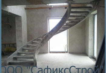 - Отсутствие нагрузки на стены. Деревянная лестница обычно крепится на стену, а при возведении винтовой модели требует установку дополнительного столба. Для бетона дополнительные точки опоры не нужны.