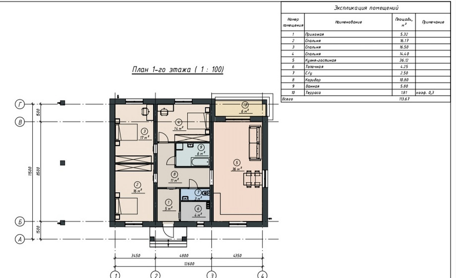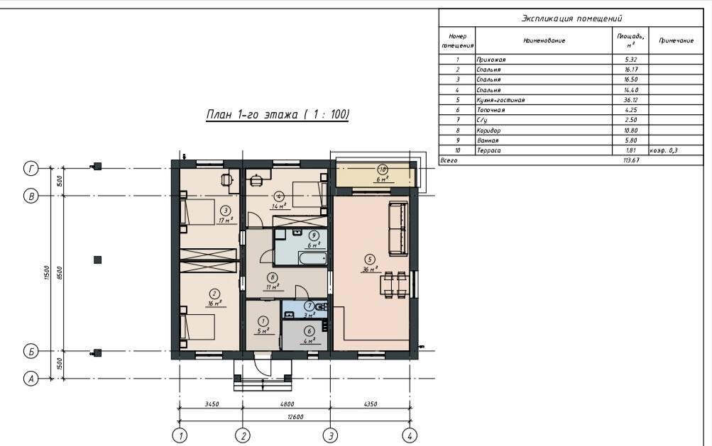 Площадь площадь дома – 113,67 м2